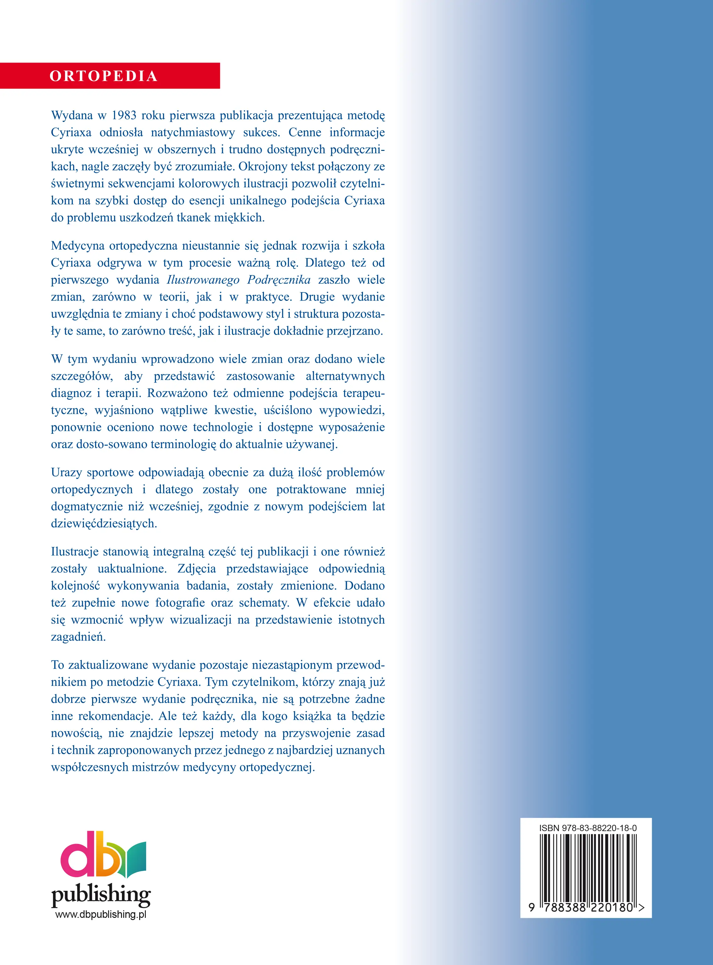 Metoda Cyriaxa kładzie silny nacisk na logiczne rozumowanie kliniczne, analizę wzorców bólu oraz rozróżnianie zmian chirurgicznych i niechirurgicznych, co czyni tę książkę niezwykle użytecznym narzędziem w codziennej praktyce. Jest to pozycja szczególnie ceniona za jasność przekazu, kliniczną precyzję oraz bezpośrednie przełożenie na badanie i terapię pacjenta.